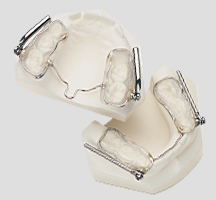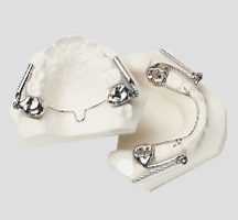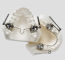 Stainless steel bands are placed on the first bicuspids and first molars in the maxillary and mandibular arches. Occlusal rests are added when the second molars are erupted.