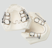 Herbst Designs: The Herbst designs include stainless steel crowns, bands and /or acrylic. The amount of mandibular advancement and bite opening depends on the case and appliance design. All Herbst designs can be reactivated by using precut “shims” or “spacers” to gain further advancement of the mandible.